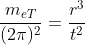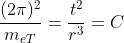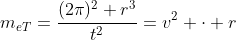 Ich nehme mal an, dass m_eT eine Naturkonstante sein soll, wie etwa das plancksche Wirkungsquantum oder die Elementarladung. Dann hätte man links eine Konstante, weil (2π)² auch eine - sogar eine mathematische - Konstante ist unf folglich müsste rechts auch eine Konstante bei herum kommen. Was ist nun aber, wenn das Verhältnis t:r mal nicht 1:1,4988e+6 wie in unserem Sonnensystem ist? Ändert sich dann auch die Masse der Elementarteilchen m_eT? Aus Dieters Formel würde ja einerseits