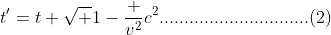 Du hast versucht, (2) in (1) einzusetzen, was aber nicht sinnvoll ist, da beide Gleichungen dasselbe physikalische Phänomen aus der Perspektive unterschiedlicher Bezugssysteme beschreiben. Das direkte Einsetzen würde bedeuten, dass du versuchst, eine Beziehung für dieselbe Zeitmessung in zwei Systemen zu erhalten, was nicht zielführend ist.