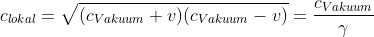 Wenn das geschehen ist, wirst du feststellen, dass Uhren in sog. Inertialsystemen bewegt oder durch Gravitation beeinflusst um besagten Faktor langsamer gehen, was sich auf die Messung lokaler Objektgeschwindigkeiten auswirkt. Die Uhren gehen deswegen lamgsamer, weil in bewegten Systemen die lokale Lichtgeschwindigkeit im geometrischen Mittel um besagten Faktor geringer ist und mit solchen langsamer gehenden Uhren werden per Radar gemessene Objektgeschwindigkeiten und Frequenzen um den selben Faktor höher gemessen, wobei Beides miteinander fest zusammenhängt: