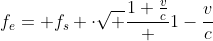 Diese beiden Formeln ergeben bei kleinen Geschwindigkeiten nahezu gleiche Ergebnisse aber bei den in unseren Szenarien angenommenen Geschwindigkeiten unterschiedliche Ergebnisse. Vor allem im Falle des "bewegten Senders hätte man sehr hohe Empfangsfrequenzen, während man beim bewegten Empfänger gerade mal die doppelte Frequenz hat.Andererseits sind diese Frequenzen die, die ein Beobachter messen würde, wenn die "bewegte Uhr" gleich "getaktet" wie seine Uhr wäre. Beim Fall des "ruhenden Senders" ist dies ja die Frequenz, mit der der Empfänger auf die Wellen trifft. Beim "ruhenden Empfänger" wäre dies die Frequenz, dir rein durch den Laufzeiteffekt (die Wellen werden "zusammen geschoben") entstehen würde. Da es nur eine "Empfangsfrequenz" geben kann und v wie c in beiden Systemen gleich sein sollen, muß die "relativistische Frequenz" "in der Mitte liegen". Allerdings passt das arithmetische Mittel nicht. Aber das "geometrische Mittel" ist das richtige Ergebnis. Denn beim Radar ist der Reflektor Empfänger wie Sender in einem. Im Ruhesystem des Radargerätes ergibt das Produkt der beiden obigen Formeln eine Formel wo 1+v/c im Zähler und 1-v/c im Nenner steht. Zieht man daraus die Wurzel, dann erhält man: