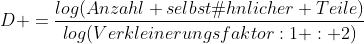 Da wir mit einem einfachsten Fraktalmuster mit konstanten Verkleinerungsfaktor zu tun haben, können wir, um die Streckenlängen zu berechnen, folgende Formel der Ähnlichkeitsdimension D anwenden: