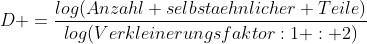 Da wir mit einem einfachsten Fraktalmuster mit konstanten Verkleinerungsfaktor zu tun haben, können wir, um die Streckenlängen zu berechnen, folgende Formel der Ähnlichkeitsdimension D anwenden: