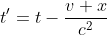 Also wenn man die Transformation von Voigt anschaut, dann sieht sie bis auf den Faktor Gamma wie die von Lorentz/Einstein aus. Aber dieser Faktor Gamma passt nicht zum Relativitätsprinzip. Nach dem RP wäre die Transformation von S' nach S dieselbe wie die von S nach S' mit -v. Dies kann man hier nicht finden. Denn t' ist bei x=0 dasselbe wie t. Das RP trifft für diese Transformation nicht zu.