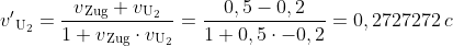 - Die U₂ bewege sich relativ zum Zug mit u₂ = 0,6c ⇒ γ₂ = 1,25 =