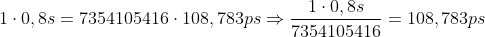Wenn nun aus irgendeinem Grund zwei baugleiche Uhren nach einem parallelen lauf unterschiedliche Werte anzeigen, kann das nur daran liegen, dass sie Takte in unterschiedlichen zeitlichen Abständen - sprich: Periodendauern - gezählt haben. Für eine Uhr, die nur 7354105416 Takte (=0,8s) anzeigt, während die andere 9192631770 Takte (=1s) anzeigt, ist für sie nicht etwa weniger Zeit und insgesamt zwei gar Zeiten vergangen, sie hat nur langsamer gezählt und zwar in zeitlichen Abständen von 135,978ps einen Takt.