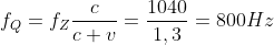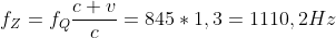 Spacerat hat geschrieben:Strahler Q bewegt sich mit 0,3c auf Punkt B zu, wobei sich seine Frequenz von 845Hz auf 650Hz ändert.