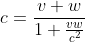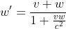 PS: Diese Formel ist jetzt zur Addition paralleler (oder antiparalleler Geschwindigkeiten), d.h. v und w sind hier keine Vektoren sondern einfach nur Zahlen. Ob v und w parallel oder antiparallel sind ergibt sich einfach nur aus den relativen Vorzeichen. Möchte man Geschwindigkeiten in 3 dimensionen addieren verwendet man eine entpsprechende Definition für die skalaren Komponenten v_x v_y v_z und so weiter...