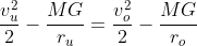 Erste Zeile: MG/r² ist die Fallbeschleunigung. Diese über r integriert ergibt die Überführungsarbeit.