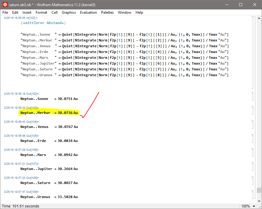 Integrationszeit: 12 neptunische Umlaufperioden (bei 6 Umlaufperioden wäre er ganz knapp hinter Venus und Erde).