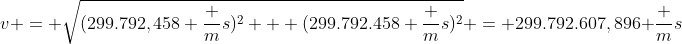 Man kann also v = 299.792,458 m/s angeben und dann für c = 299.792.458 m/s und fröhlich v und c addieren und vorher quadrierten und aus der Summe die Wurzel ziehen.