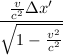 In I werden zwei Ereignisse (E1, E2) mit dem räumlichen Abstand Δx als gleichzeitig gewertet. Aufgrund folgender Formel sind die Ereignisse in I' nicht gleichzeitig, sondern das Ereignis, dessen x-Koordinate größer ist, findet