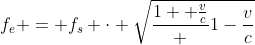 Im Falle des Dopplereffektes für elektromagnetische Wellen gibt es ja kein Medium. Daher ist der relativistische Dopplereffekt das geometrische Mittel aus dem Dopplereffekt bei im Medium ruhenden Sender und im Medium ruhenden Empfänger. Die Formel lautet dann für den Fall des longitudinalen Dopplereffekts :