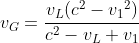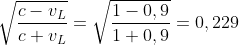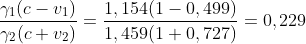 v = (v1 + v2) / (1 + v1v2) = (-0,499 + 0,728) / (1 + (-0,499) * 0,728) = 0,359 c