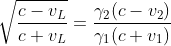 ... oder noch viel passender mit v1 = -0,499 c und v2 = 0,728 c.
