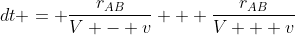 Für den Beobachter, der den Stab an sich vorbeifliegen sieht, ist das aber anders. Der Lichtstrahl benötigt von A nach B länger, da während der Lichstrahl versucht B zu erreichen, das Ziel B sich mit v entfernt. Daduch wird die Strecke für den Lichtstrahl länger. Es wird r/(V+v) mit seinen Uhren gemessen, bis der Lichtstrahl B erreicht. Für die Rückreise ist die Bedingung umgedreht: Der Messpunkt A kommt dem Lichtstrahl entgegen. Die Uhren messen das mit r/(V-v), die Strecke ist für den Lichtstrahl kürzer. Für den Beobachter, der den Stab an sich vorbeifliegen sieht, vergeht also r/(V-v) + r/(V+v) an Zeit für den Vorgang, für den Beobachter, der mit dem Stab ruht vergeht 2 * r/V an Zeit