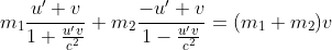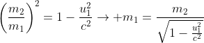 In Zähler und Nenner erhält man dann die von dir genannte "halbe Geschwindigkeit". Denn durch diese Multiplikation kann der Ausdruck in der Wurzel direkt von der 1 abgezogen werden und man hat dann das Quadrat von u/c, was dann mit c**2/u multipliziert u ergibt. Damit kann man dann die 1. Gleichung für den Fall u=v so umforment, daß man die gewünschte Beziehung zwischen m1 und m2 erhält.
