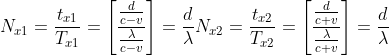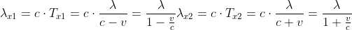 Danach multipliziert er die beiden Periodendauer mit der Lichtgeschwindigkeit c, um die Wellenlängen (welche mit
