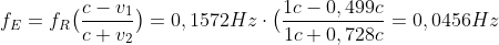 und diese Frequenz wird um den Faktor 1,154 höher empfangen, also mit 0,0526Hz. Daraus geht mit der Formel