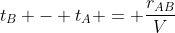 Zur Zeit 1) tA gehe ein Lichtstrahl von A aus, werde zur Zeit tB in B reflektiert und gelange zur Zeit t'A nach A zurück. Unter Berücksichtigung des Prinzipes von der Konstanz der Lichtgeschwindigkeit finden wir: