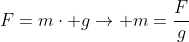 F=Gewicht m=Masse g=Fallbeschleunigung
