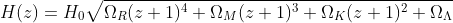 Bild hat geschrieben:H(z)=H0·√(ΩR·(z+1)⁴+ΩM·(z+1)³+ΩK·(z+1)²+Ωλ)