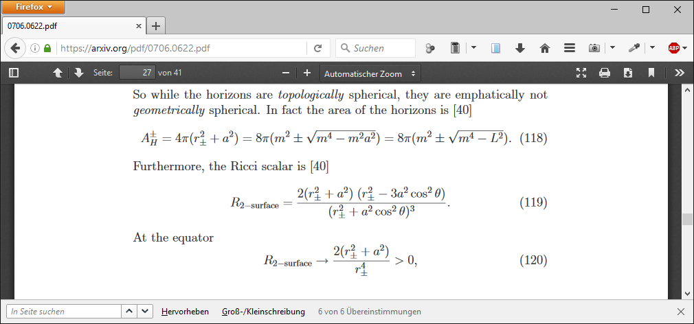 Der ZD-Faktor wurde auch wieder von dτ/dt auf dt/dτ umgestellt (statt z.B. 0.1 wird jetzt stattdessen 10 angezeigt). Die anderen Bilder bekommen beizeiten auch noch eine weitere Zeile verpasst (vielleicht auch noch eine weitere für die Rapidität) und werden stillschweigend upgedatet (ebenso der Code). Bei den Bildern einen Beitrag weiter oben kann man übrigens auch so leicht auf die beobachtete Geschwindigkeit schließen da die Bewegung am Ende so gut wie nur auf der ψ-Achse stattfindet; das Feld v verzögert und Frame Dragging lässt sich in dem Fall auch ohne Pythagoras leicht addieren, besonders wo v verzögert dann ohnehin gegen 0 konvergiert.