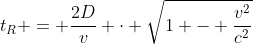 Aus der Perspektive des reisenden Zwillings vergeht aufgrund der Zeitdilatation weniger Zeit. Die für ihn selbst gemessene Zeit lässt sich wie folgt berechnen: