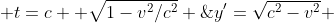y'=sqrt(c^2-v^2)t=c * sqrt(1-v^2/c^2)t=y * sqrt(1-v^2/c^2)