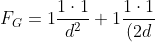 Der Einfachheit halber rechnen wir ganz ohne Einheiten mit kugelförmigen Einheitsmassen, die einen einheitlichen Durchmesser (d) haben und die sich nicht überlappen können. Zur weiteren Vereinfachung, nehmen wir auch einen Proportionalitätsfaktor (Gravitationskonstante) von G=1. Für das Gravitationsgesetz bedeutet dies