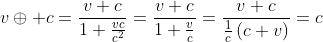 Wozu dann der ganze Hokus-Pokus, wenn unabhängig von allen möglichen v, in den Grenzen von 0 bis c als Funktionsergebnis c geliefert wird? Das ist doch lediglich mathematische Trickserei. Man könnte auch schreiben f(v) = c