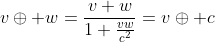 Richtig, aber man sollte sich schon auch klarmachen, dass bei der SRT-Addition von Geschwindigkeiten nicht grundsätzlich immer c herauskommt. Sondern c kommt eben dann heraus wenn wenigstens eine der beiden zu addierenden Geschwindigkeiten c ist. Ich denke das erklärt dann die ursprüngliche Problematik das Ausdrücke wie c+v=c, in diesem zusammenhang für verwirrung gesorgt haben.