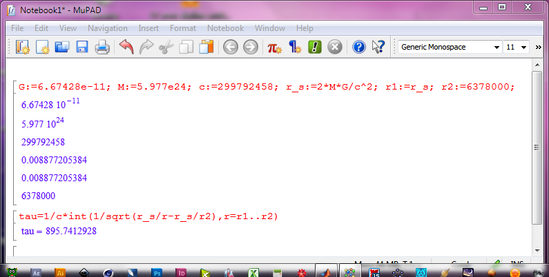 r2:=6378000; rs:=2*G*M/c^2;