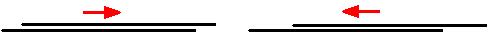 ergeben müssten. Die schwarzen Punkte in den Strecken sollen Sender und Empfänger sein, wie es z.B. bei Spiegeln der Fall ist. Auf der Strecke A laufen von 1 nach 2 und weiter zu 3 Wellen, deren Längen auf dem Hin- und Rückweg unterschiedlich sind. Laufen von 1 bis 3 dopplerverkürzte Wellen, so ist die Anzahl der Wellenlängen höher als jene von 3 nach 1, denn hier sind die Wellen dopplergedehnt. |